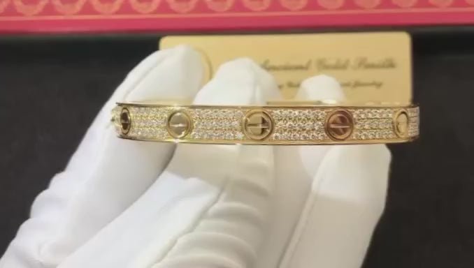 LOVE bracelet, 18K yellow gold, set with 204 brilliant-cut diamonds totaling 2 carats. Width: 6.7 mm (for size 17).